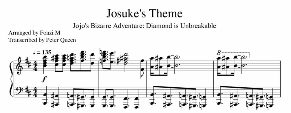 "Josuke's Theme" - JoJo's Bizarre Adventure: Diamond is Unbreakable Main Theme (Sheet Music PDF)