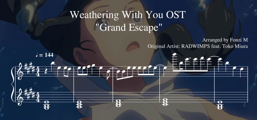 This is the Sheet Music PDF of Fonzi M's piano cover of the Weathering With You OST - Grand Escape!